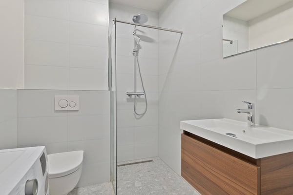 L'immobile dispone di un soggiorno luminoso con cucina a vista sul davanti, una camera da letto separata e un bagno adiacente. Grazie alle grandi finestre, si può godere di una sensazione aperta e spaziosa. Completamente nuovo e pronto per essere abitato.