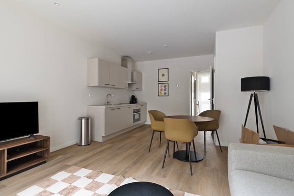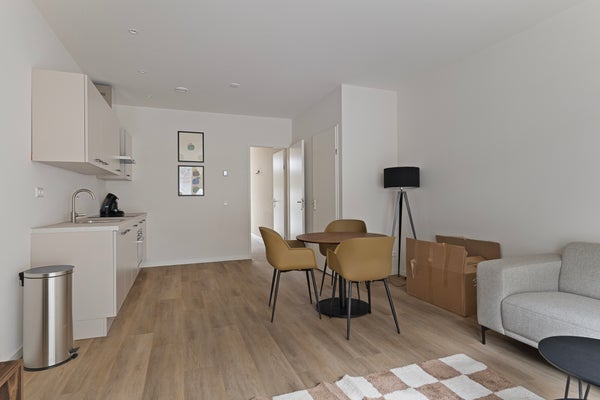 Vivere comodamente in un appartamento moderno con una disposizione pratica, situato in un quartiere cittadino caratteristico e verde vicino al centro di Rotterdam.