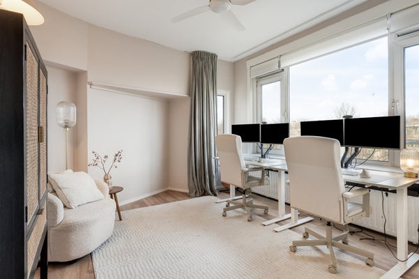 Un appartamento con due camere da letto completamente arredato e decorato situato sulla Statenweg a Blijdorp, Rotterdam Noord. L'appartamento si sviluppa su due piani, con una terrazza sul tetto privata e un ampio soggiorno luminoso. Un luogo perfetto per professionisti o espatriati che cercano una casa temporanea con abbastanza spazio e tranquillità, pur rimanendo vicini alla città.