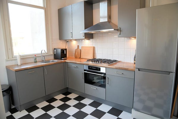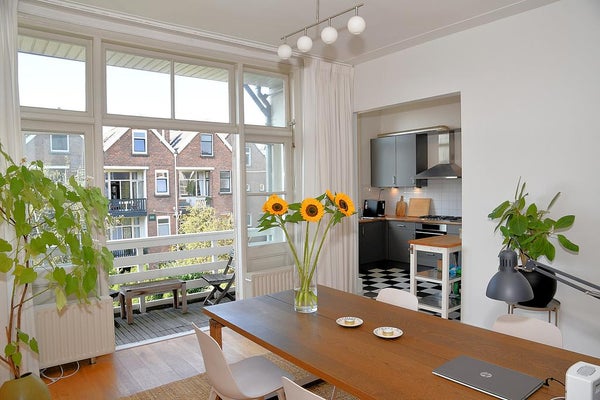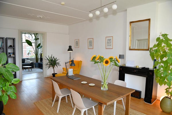 Taborstraat 7 A a Rotterdam-Kralingen è un duplex classico doppio di circa 165 m², ben mantenuto, situato al secondo e terzo piano di un belle casa. Dettagli autentici come soffitti stucco, porte a pannelli e un camino in marmo sono preservati. Dopo recenti lavori di verniciatura e nuovi pavimenti, la casa è luminosa e accogliente. Dispone di tre balconi che offrono vista libera sia davanti che dietro. Layout: ingresso con citofono, ampio corridoio e grande soggiorno luminoso con porte a battente che conducono a un balcone soleggiato. La cucina moderna è ben attrezzata. Al terzo piano ci sono diverse camere da letto e un bagno moderno. Sono presenti cinque pannelli solari, certificato energetico C, e disponibile dal 1° febbraio 2026 con un contratto di locazione di almeno 12 mesi.