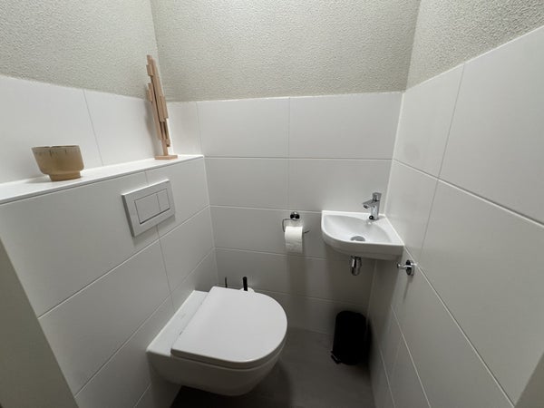 Distribuzione: Ingresso in comune con cassetta della posta e tavolo di tabulazione. Dall'ingresso si accede al bagno, al wc separato, alla lavanderia e al soggiorno. Il soggiorno è situato nella parte anteriore ed è spazioso e arredato con gusto, formando il cuore dell'appartamento. La cucina aperta è realizzata in una palette di colori grigi e offre molto spazio per lavorare e cucinare. La cucina è attrezzata con un piano cottura a induzione, cappa aspirante, lavastoviglie, forno, microonde e lavello. Accanto alla cucina si trova un ampio tavolo da pranzo con sedie. La zona giorno è arredata con un comodo divano, un mobile TV e una poltrona. Dal soggiorno si accede alla camera da letto. La camera da letto è arredata con un letto matrimoniale a molle e un armadio. Il bagno è dotato di doccia walk-in, lavabo con specchio e finiture moderne. Il wc è separato e presenta un piccolo lavabo. Il capiente ripostiglio/lavanderia è arredato in modo pratico con una lavatrice e ampio spazio per riporre.