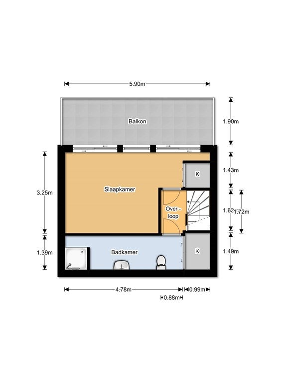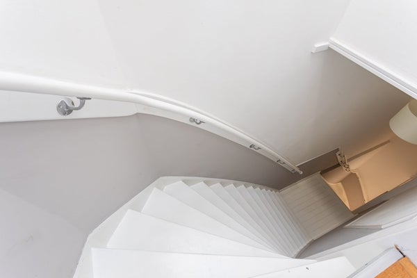 Le scale portano al mezzo terzo piano, dove il pianerottolo offre accesso sia alla camera da letto che al bagno. La camera da letto di ampie dimensioni presenta un grande armadio a muro e un letto matrimoniale con rete a doghe regolabile. Dalla camera da letto è possibile accedere alla spaziosa terrazza sul tetto, perfetta per rilassarsi o intrattenere. Il lussuoso nuovo bagno è dotato di una doccia a pioggia, un lavabo con specchio, lavatrice, asciugatrice, riscaldamento a pavimento e sanibroyeur.