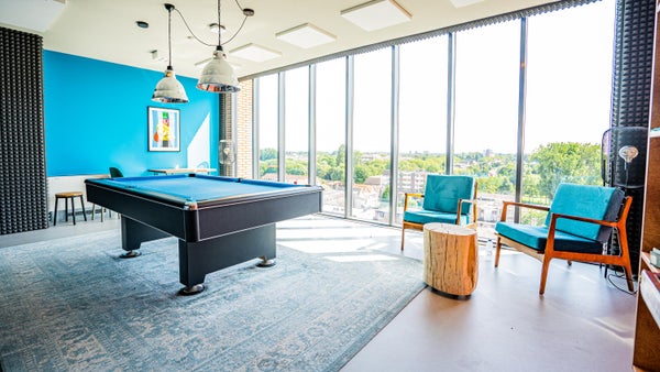 Qui vivi completamente in modo indipendente ma in una vera comunità con i seguenti 5 pilastri: Insieme / Comfort / Divertimento / Indipendente / Consapevole! All'interno dell'edificio puoi usufruire completamente di varie funzioni collettive (ben 3.302m2) come: vari spazi relax, palestra, cinema, biblioteca, area cardio, campo sportivo, sala giochi, cucina, spazio hobby e servizio pacchi. Rilassati sull'enorme terrazzo sul tetto con area barbecue all'ultimo piano e speriamo presto di poter aggiungere un ristorante al complesso. Ogni unità ha il proprio posto per biciclette nella rimessa e, a pagamento, puoi utilizzare le auto condivise disponibili. È stata prestata attenzione anche alla sicurezza, così c'è un punto di incontro presidiato in determinati orari, un host di sicurezza e una videosorveglianza permanente.