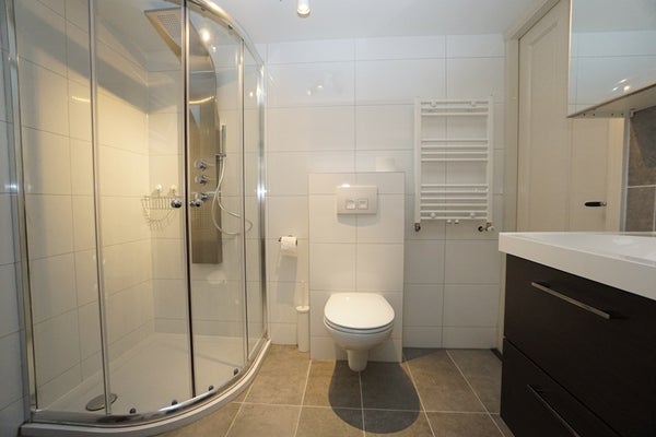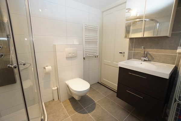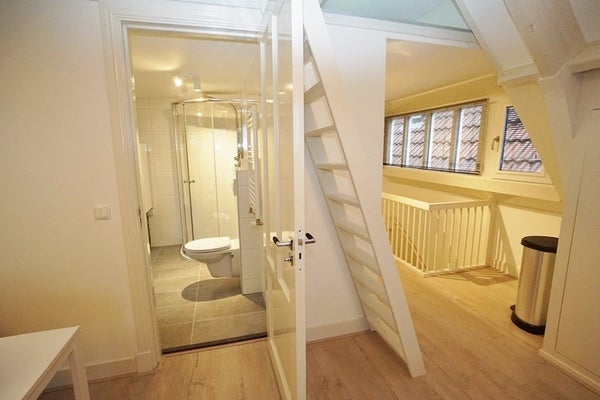 Distribuzione: Ingresso comune al piano terra, ingresso dell'appartamento, che è interamente dotato di laminato. Il soggiorno accogliente è arredato, tra l'altro, con un divano a due posti, un tavolo da caffè, una TV e una poltrona. La moderna cucina aperta in bianco lucido è dotata di un piano cottura a gas a 4 fuochi, forno, cappa, lavello e lavastoviglie. Il bagno in tonalità bianche è dotato di una doccia angolare, lavabo con specchiera, WC sospeso, radiatore di design e lavatrice. La camera da letto è dotata di un letto matrimoniale con spazio di stoccaggio e armadietto per biancheria. Adatto per 1 studente.