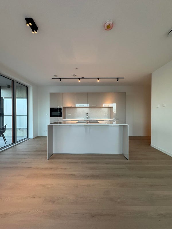 L'abitazione dispone di un soggiorno molto spazioso e luminoso con ampie vetrate e di una cucina aperta con isola di cottura. La cucina è rifinita con materiali di alta qualità e dotata di vari elettrodomestici integrati, tra cui un piano cottura a induzione, un forno, una lavastoviglie, un frigorifero e un congelatore. Grazie alla disposizione aperta, la cucina forma una parte centrale e confortevole dello spazio abitativo.