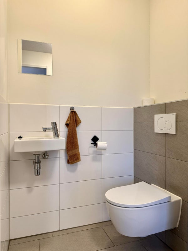 Questo appartamento di nuova costruzione è rifinito in modo molto elegante con una cucina completa dotata di piano cottura a induzione, sistema di aspirazione Bora, lavastoviglie, microonde/forno combinato e frigorifero. Il bagno dispone di rubinetti termostatici di lusso, un doppio lavabo e una doccia walk-in. Inoltre, l'appartamento è dotato di una pompa di calore, riscaldamento a pavimento e raffreddamento a pavimento, per cui non è presente alcun allacciamento al gas.