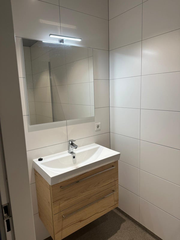 L'immobile è completamente autonomo e dispone di una cucina con attrezzature di cottura, cappe aspiranti, lavastoviglie, ecc. Il bagno ha una doccia in ordine, un WC e un lavabo. L'appartamento viene consegnato arredato con un pavimento in PVC di alta qualità e tende.