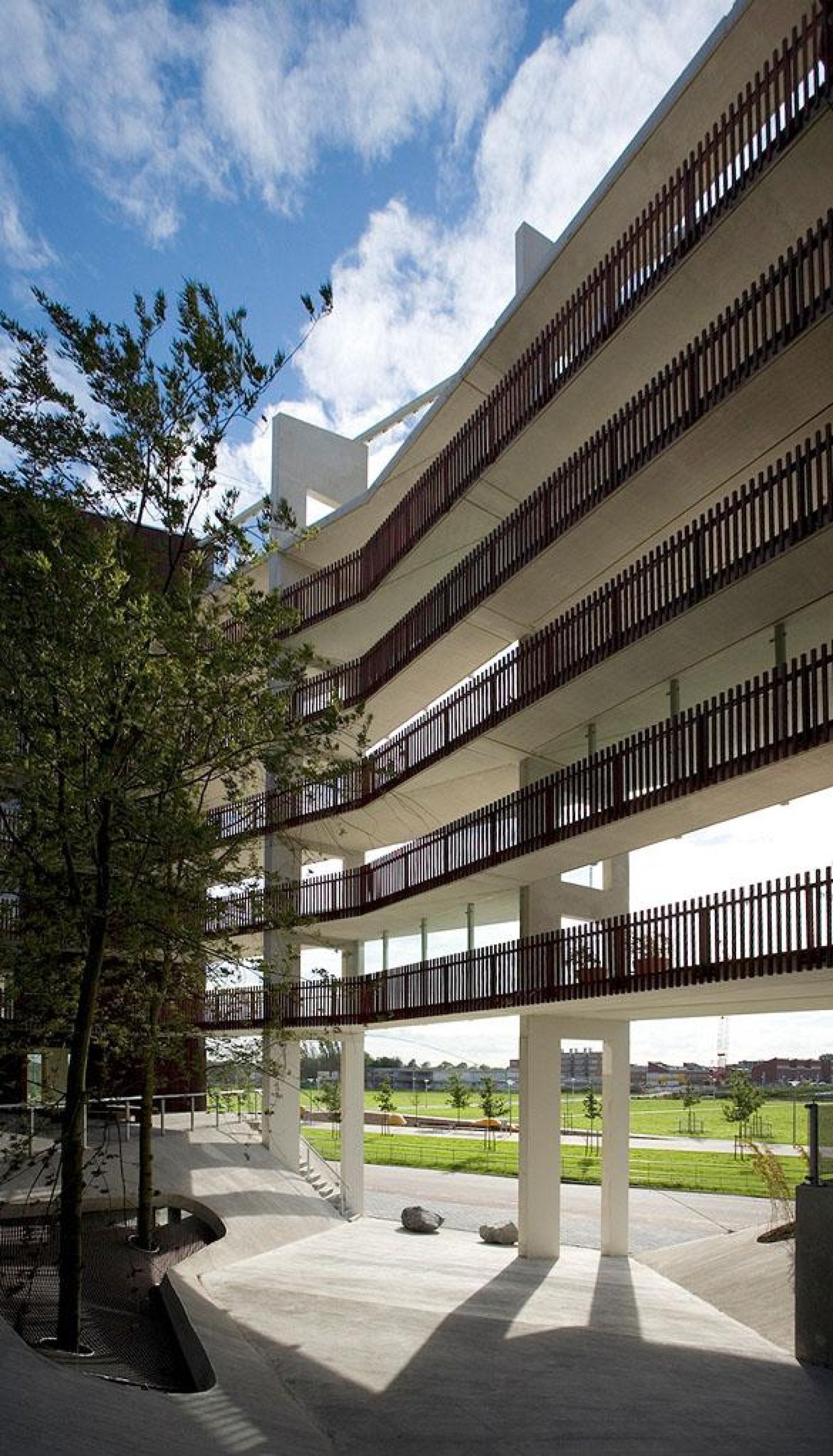 Nella Boemerang troverete appartamenti con quattro o cinque camere, oltre a appartamenti con tre camere con diverse modalità di disposizione. Ogni appartamento presenta finiture di alta qualità, tra cui una cucina completamente attrezzata e un bagno con vasca, doccia separata e doppio lavabo. Le ampie porte pieghevoli ai margini dell'edificio creano uno spazio aperto che collega l'interno con l'esterno. Per maggiore sicurezza, è presente un citofono video e le finestre e le porte sono dotate di sistemi di chiusura solidi. È disponibile un posto auto e ampi spazi per biciclette. Con le comodità nei dintorni, come un centro commerciale e scuole, e la stazione a pochi passi, questo appartamento è ideale. L'affitto è di €1786 al mese più €35 di spese di servizio, con un contratto di locazione minimo di un anno.