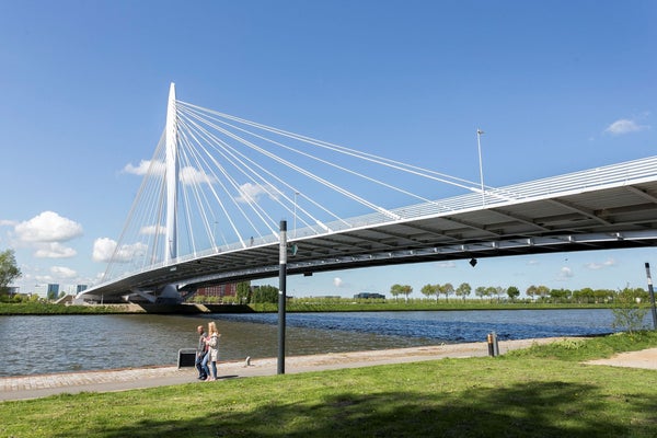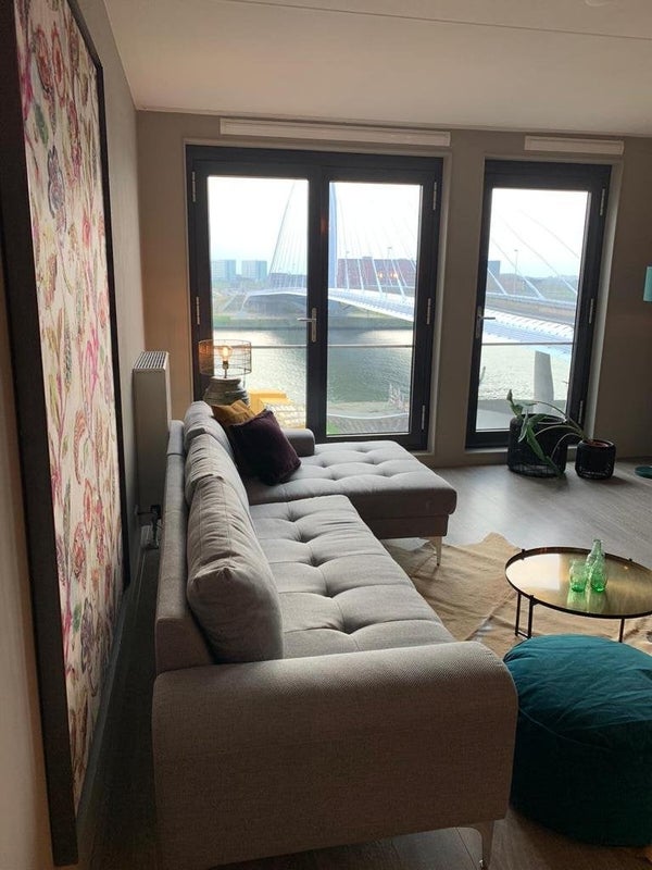 Un delizioso appartamento arredato, luminoso e spazioso, con posto auto coperto e una fantastica vista sul canale Amsterdam-Reno e sul ponte Prince Claus.