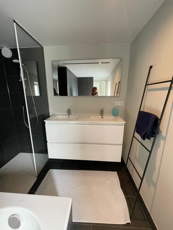 L'appartamento si trova al terzo piano con ampio soggiorno/sala da pranzo, cucina di lusso con elettrodomestici da incasso, 2 camere da letto, area di lavoro, 2 bagni, WC separato.