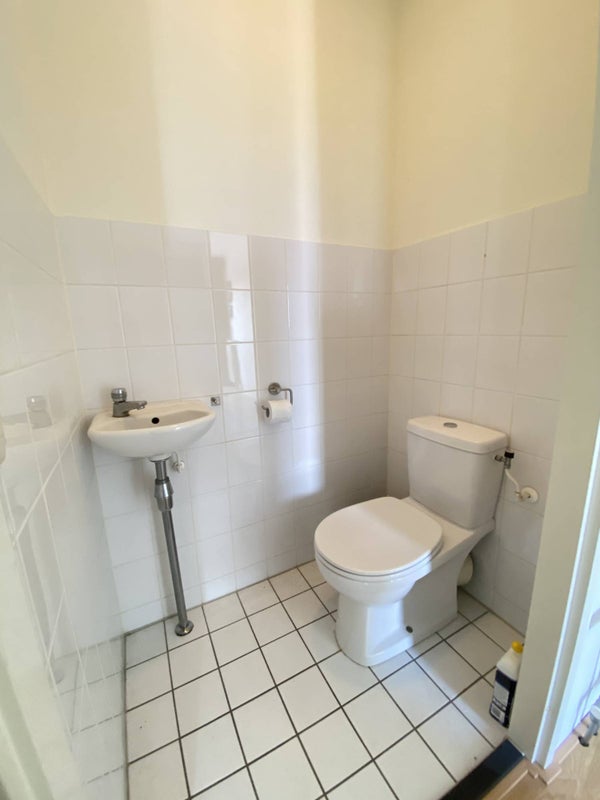Servizio igienico separato e un moderno bagno con doccia e lavabo.