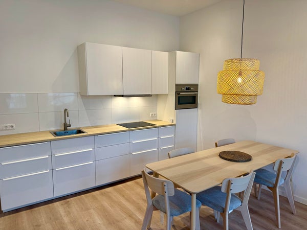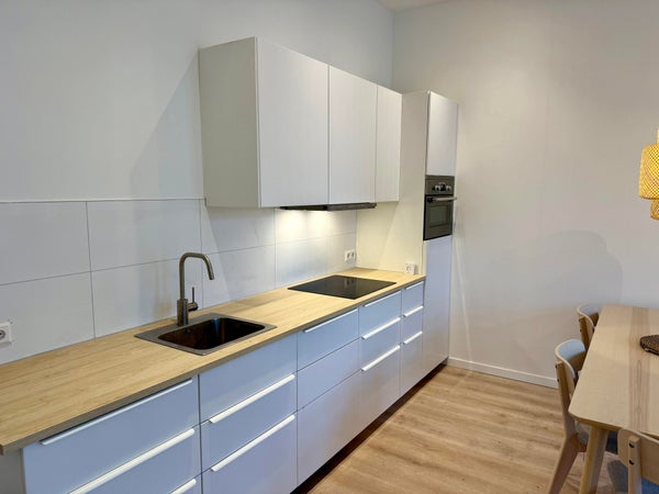 La cucina pratica di 5m² offre abbastanza spazio per cucinare con piacere ed è ben tenuta. (Nota: la data esatta di installazione della cucina non è menzionata, ma lo spazio è funzionale e collegato al soggiorno.)