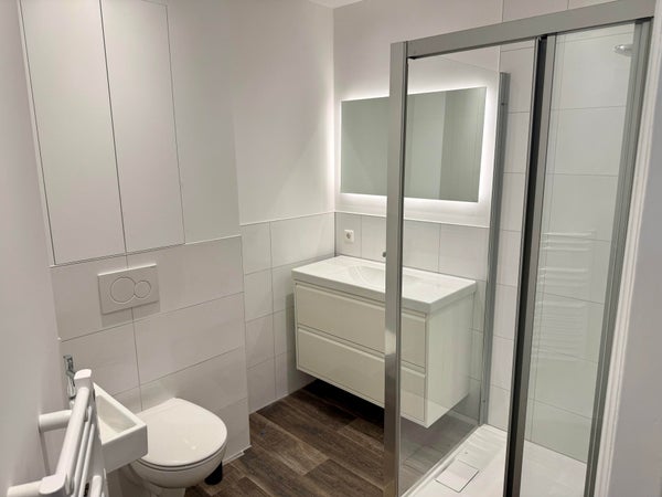 Il bagno è composto da due stanze di 5m² ciascuna, arredate in modo pratico per permettervi di svolgere comodamente tutta la vostra cura personale.