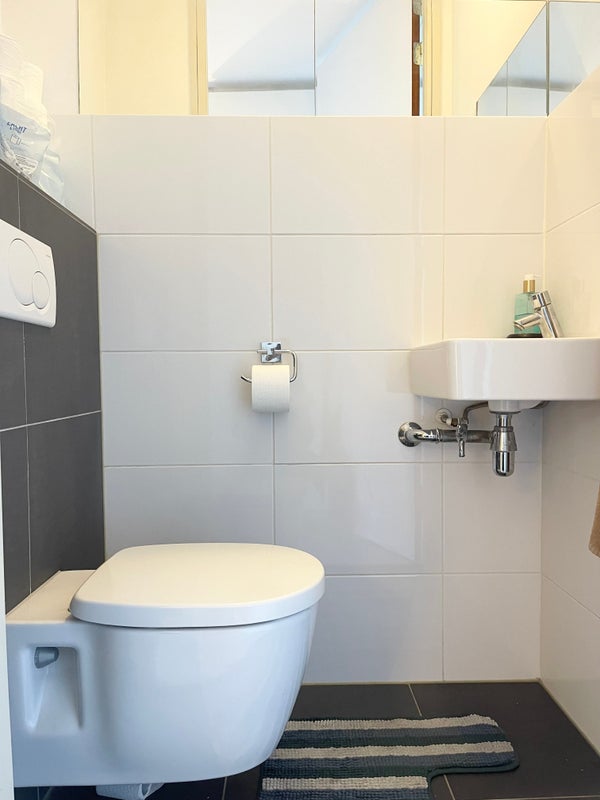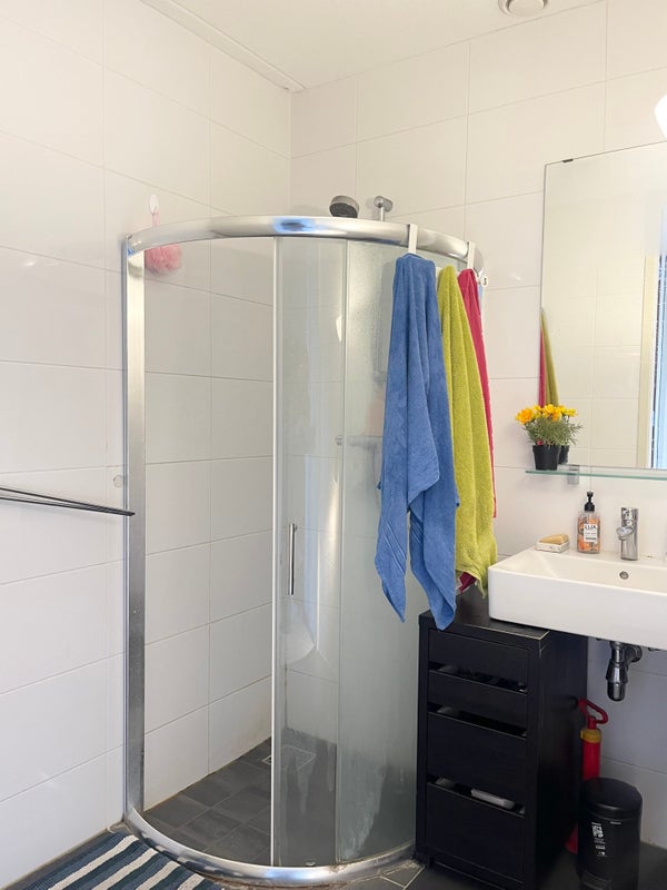 L'appartamento dispone di due ampie camere da letto. Il bagno è fornito di doccia e lavabo. Il servizio igienico è separato dal bagno. Disponibile spazio aggiuntivo per riporre o lavare.