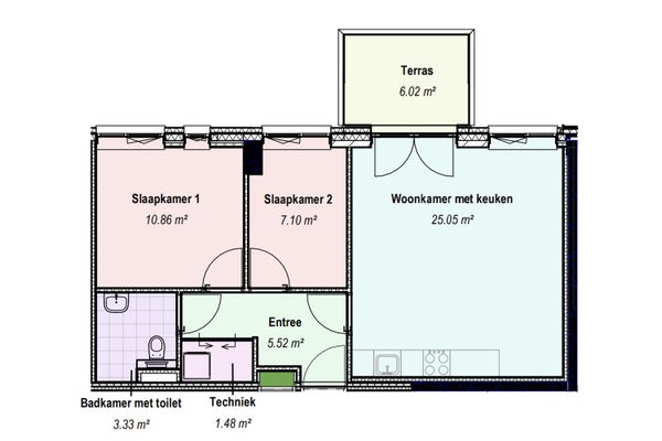 Questa moderna abitazione fa parte di un complesso di appartamenti a Velp, un complesso sostenibile. La disposizione è spaziosa e logica: un corridoio che offre accesso a tutte le stanze, un luminoso soggiorno con balcone, una cucina aperta, una camera da letto separata, un bagno e un ulteriore spazio di archiviazione.