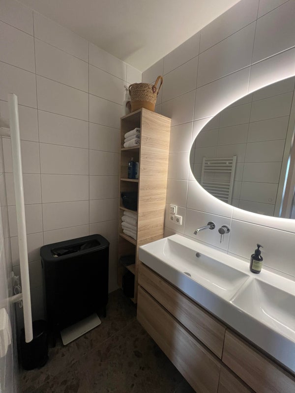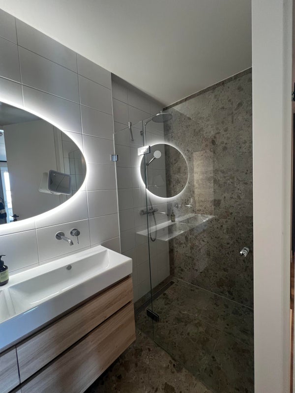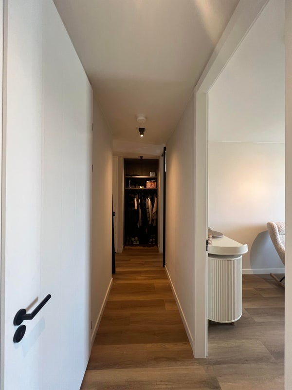 L'appartamento dispone di 3 stanze, comprese due ampie camere da letto. Il bagno è ben rifinito e dotato di doccia, lavabo doppio e radiatore per asciugamani. Inoltre, c'è un WC separato nel corridoio.