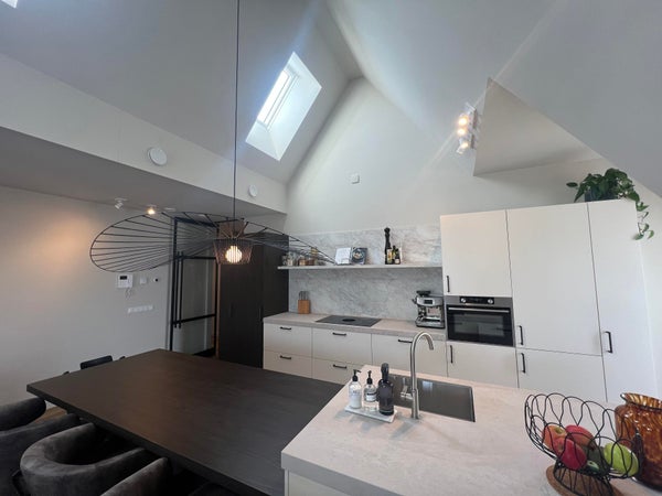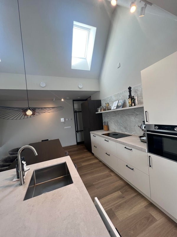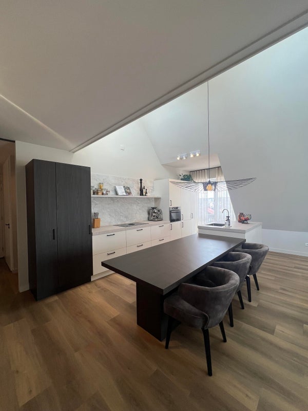 L'appartamento si trova al terzo piano e dispone di un luminoso e spazioso soggiorno con grandi finestre, che offre uno spazio abitativo aperto e piacevole. La cucina moderna è finemente rifinita e dotata degli elettrodomestici necessari. L'abitazione è efficacemente suddivisa e rifinita con materiali di alta qualità.
