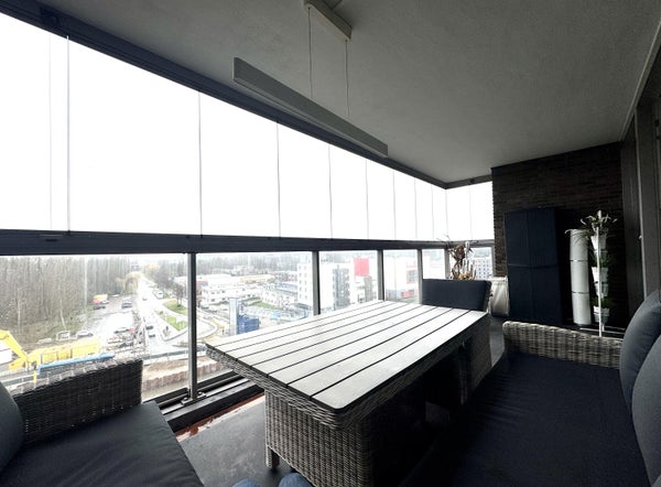 Questo luminoso e spazioso appartamento si trova all'8° piano. Grazie alla posizione d'angolo e alle grandi finestre, puoi godere di molta luce naturale e di una splendida vista libera. Il balcone si estende per tutta la larghezza dell'appartamento, ideale per rilassarsi e godersi l'aria aperta.