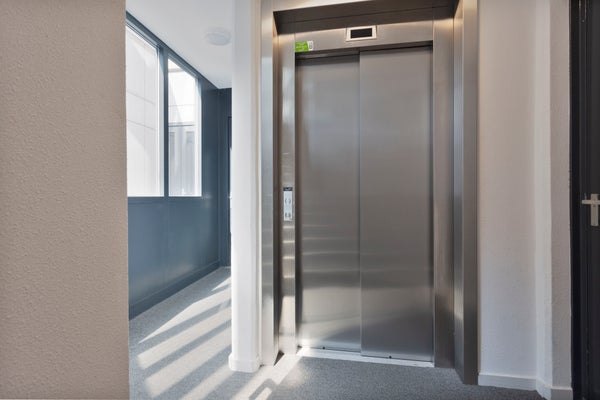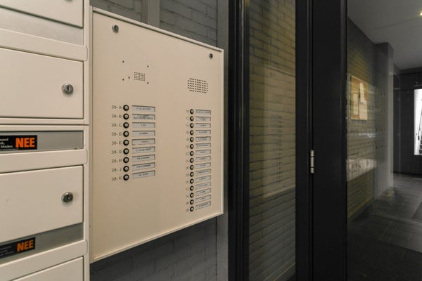 Hall centrale con citofono e cassette postali e accesso all'ascensore e ai ripostigli.