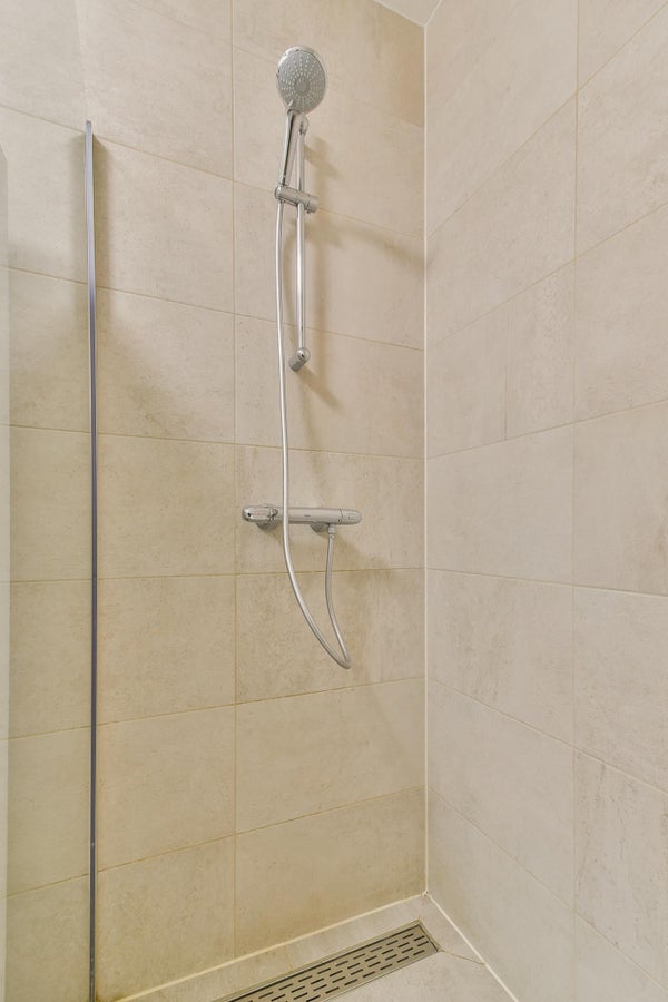 La salle de bain est spacieuse et moderne, avec un grand lavabo avec des armoires de rangement, une douche à l'italienne et un chauffage confortable.