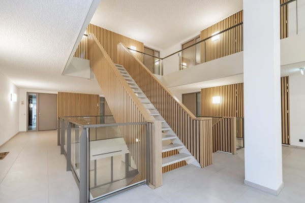 Par l'entrée centrale de luxe, vous accédez à l'Atrium via l'ascenseur qui donne accès à l'entrée de l'appartement.