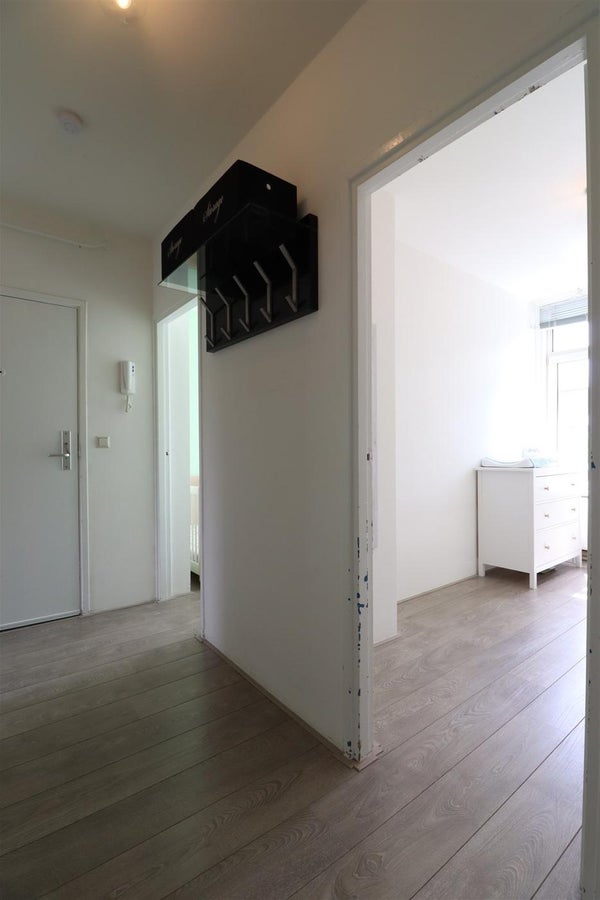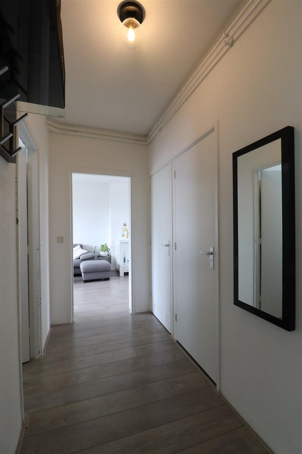 L'appartement se trouve au troisième étage d'un complexe d'appartements bien entretenu et est accessible par les escaliers. Le hall de l'appartement donne accès à presque toutes les pièces. À gauche, l'accès aux deux chambres situées à l'arrière (côté sud) du complexe. La première chambre sert de chambre principale, elle est équipée d'un lit king-size et d'un placard intégré pratique. La deuxième chambre, un peu plus petite, fait office de dressing, mais offre, en plus du grand mur de placards et du placard intégré, suffisamment d'espace pour un lit simple. Sur le côté droit du hall, accès à la belle cuisine moderne, aux toilettes séparées et à un placard de rangement pratique qui abrite également le lave-linge et le sèche-linge. Au bout du hall, se trouve le spacieux et ensoleillé salon avec coin repas. De là, accès au balcon côté sud du complexe.
