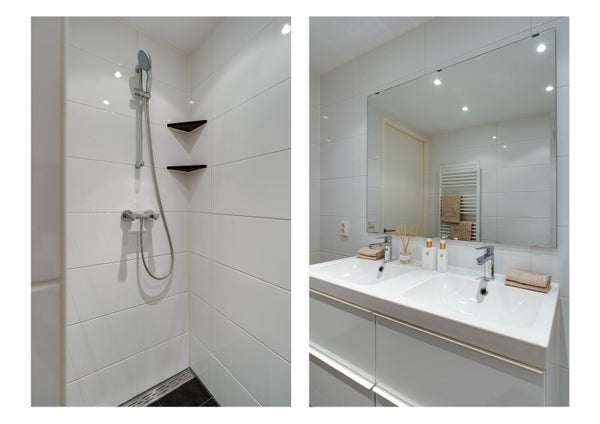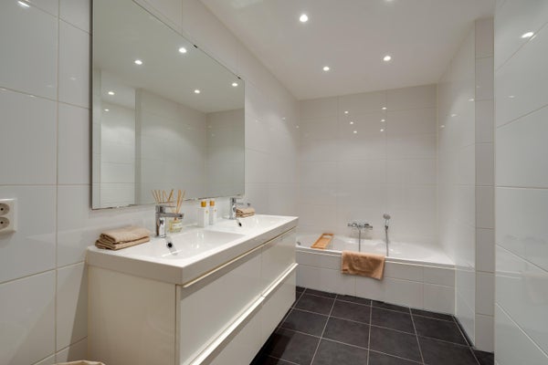 - Salle de bain avec baignoire, douche à l'italienne et double vasque