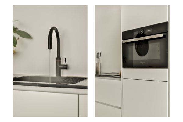 Jolie salle de séjour lumineuse avec accès au spacieux balcon. Les vues depuis le salon, la chambre et le balcon sont magnifiques. La cuisine ouverte est équipée d'appareils encastrés de haute qualité.