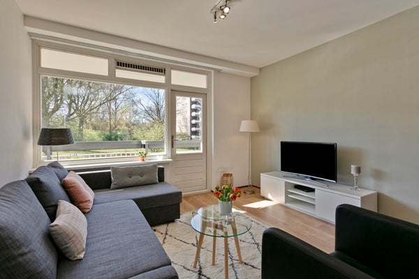 À la lisière de l'Amsterdamse Bos dans le quartier de Buitenveldert, nous proposons à la location ce spacieux appartement de 3/4 pièces. L'appartement est situé dans un quartier calme avec une vue dégagée et un grand balcon orienté à l'ouest où vous pourrez profiter du soleil de l'après-midi et du soir.