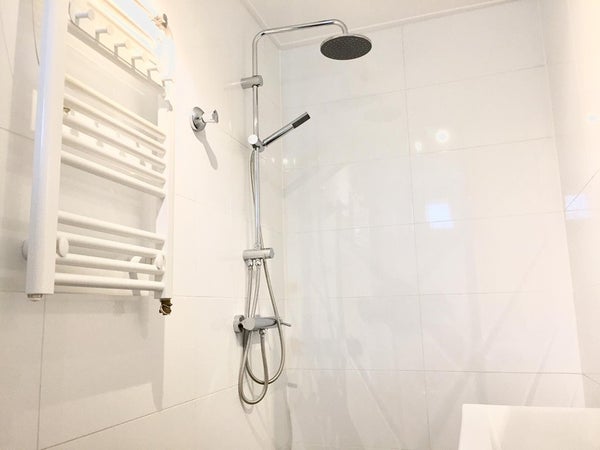• Salle de bains avec douche à effet pluie, machine à laver et sèche-linge