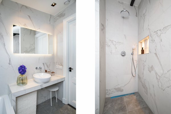 Via l'entrée commune au niveau de la rue, vous pouvez atteindre les appartements du premier, deuxième et troisième étage par les escaliers. Tous les appartements disposent d'une luxueuse cuisine ouverte avec tous les appareils intégrés nécessaires, y compris un four/micro-ondes SIEMENS, une plaque de cuisson à induction, un lave-vaisselle et un réfrigérateur intégré. Les appartements comprennent également une salle de bains moderne avec baignoire, doubles vasques, grande douche à l'italienne et toilettes séparées.