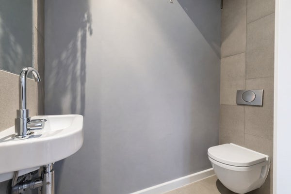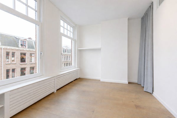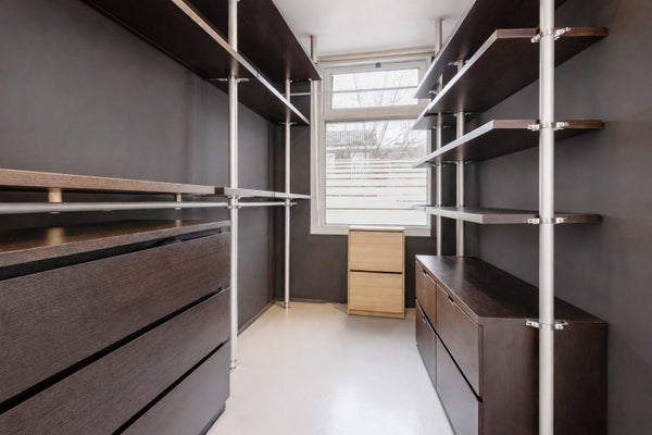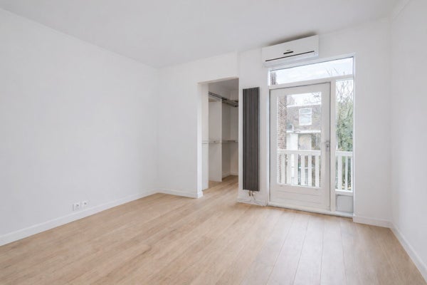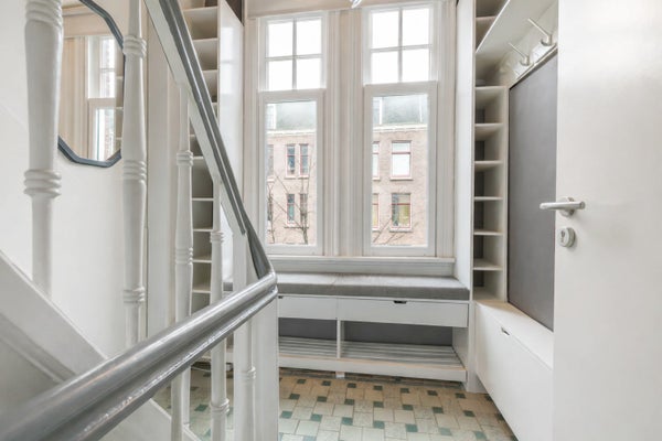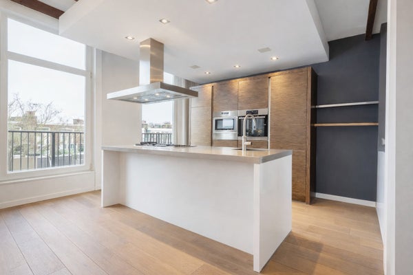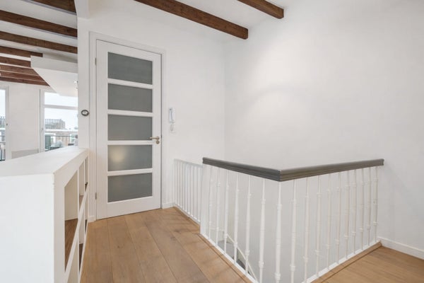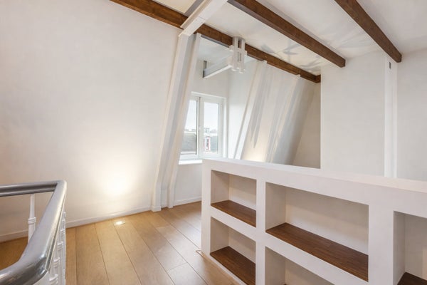 Par les portes-fenêtres, vous accédez au balcon avant avec vue sur les toits de De Pijp. Cette propriété comprend trois chambres, dont une vaste chambre principale avec climatisation et un dressing avec un système de rangement sur mesure. La salle de bain est luxueusement aménagée avec un double évier, une douche à l'italienne avec douche à effet pluie, et une baignoire. De plus, il y a des toilettes séparées.