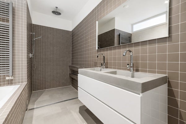 Salle de bain : Baignoire, douche à l'italienne, double évier, toilettes séparées
