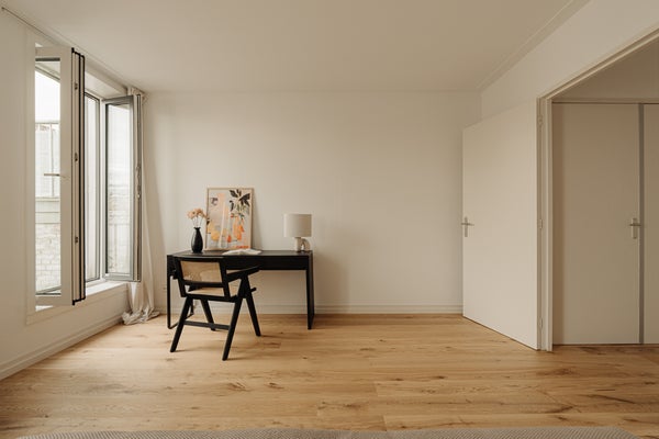 L'appartement occupe les troisième et quatrième étages et dispose d'un agencement lumineux et fonctionnel.