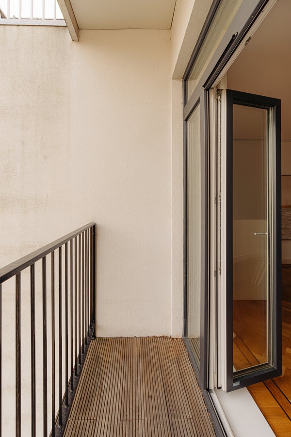 Il y a une terrasse et un balcon.
