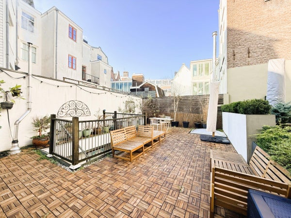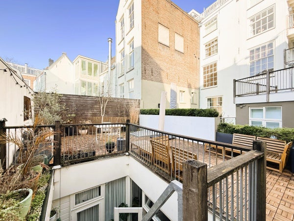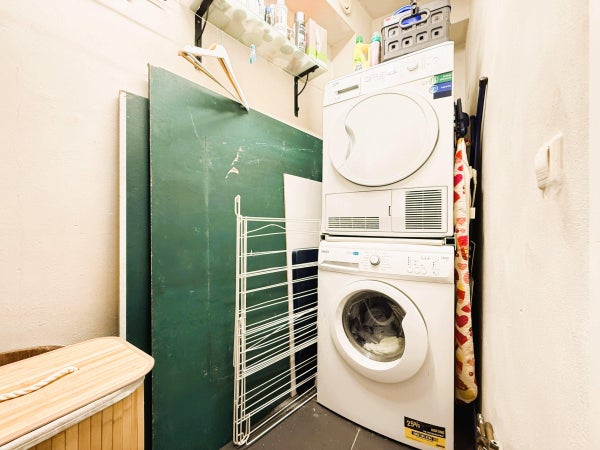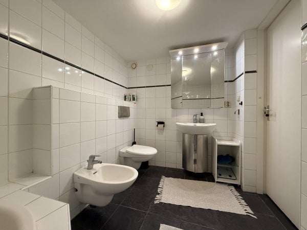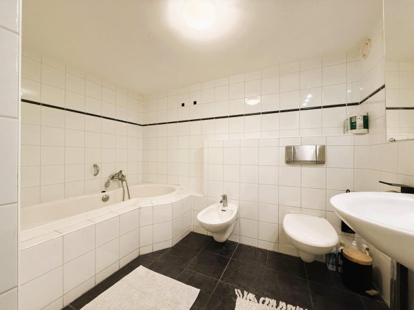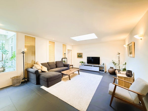 Agencement : L'entrée de ce bâtiment monumental donne accès à l'appartement. Un hall spacieux permet d'accéder à la grande première chambre avec lit double. Depuis le hall, vous avez également accès à deux salles de bain, l'une avec douche et toilettes, l'autre avec baignoire, toilettes et bidet. L'ensemble de l'appartement est équipé d'un chauffage au sol confortable. À l'arrière de l'appartement se trouve le grand salon et salle à manger ouverts. De grandes fenêtres et des fenêtres de toit créent une atmosphère lumineuse et accueillante. La cuisine moderne est entièrement équipée avec un espace de rangement suffisant, deux éviers, une grande cuisinière et un lave-vaisselle. Mitoyenne à la cuisine, se trouve une buanderie séparée avec lave-linge et sèche-linge. La deuxième chambre est attenante au salon et dispose également d'un lit double. Cette chambre et le salon offrent un accès direct à un charmant patio privé. Depuis le patio, un solide escalier mène à la spacieuse et ensoleillée terrasse privée – un endroit idéal pour se détendre ou recevoir, profitant de l'intimité et de l'air frais en plein centre-ville.