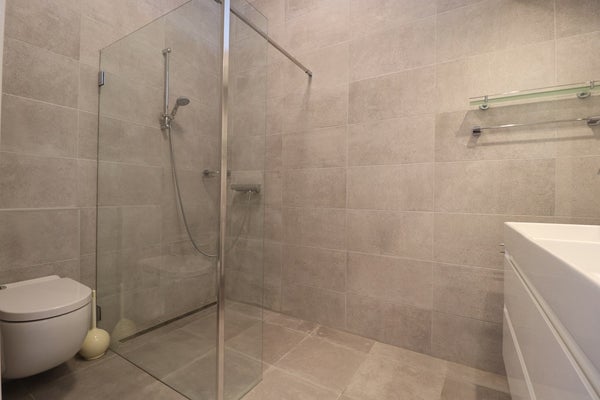 - Salle de bain avec douche à l'italienne, lavabo double et deuxième toilette