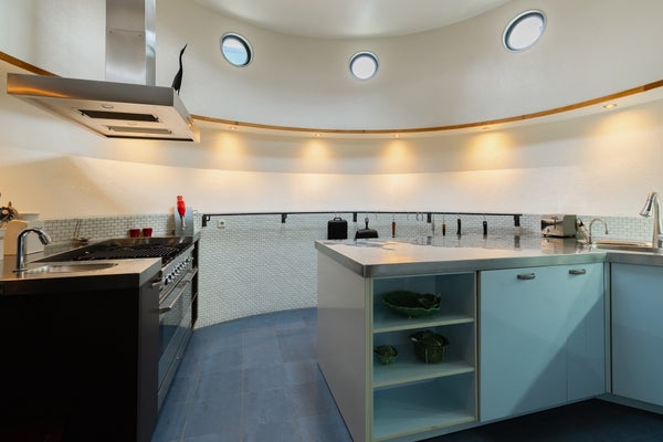 La cuisine ouverte moderne est entièrement équipée d'appareils encastrés de haute qualité, de suffisamment d'espace de rangement, et d'un plan de travail élégant - idéal pour ceux qui aiment cuisiner et recevoir.