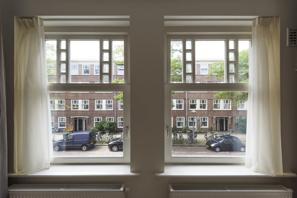 La Van Spilbergenstraat est située dans le quartier De Baarsjes d'Amsterdam Ouest. La rue est très calme et à proximité de nombreuses commodités. À distance de marche, on trouve le Mercatorplein récemment rénové et la Jan Evertsestraat, offrant une grande variété de boutiques et de restaurants. Le parc Rembrandt, verdoyant, est également à proximité, parfait pour une promenade relaxante, ainsi que le marché frais de Ten Kate pour les courses quotidiennes. Le centre d'Amsterdam est accessible en environ 10 minutes à vélo. Les connexions de transport en commun sont excellentes, avec diverses lignes de bus et de tramway circulant fréquemment vers et depuis les stations environnantes. Les grands axes routiers tels que le ring A10, l'A4 et l'A9 sont facilement accessibles. Le stationnement est disponible dans la rue.