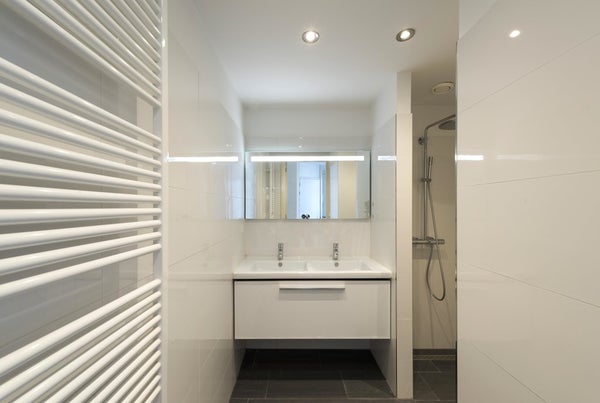 Depuis le couloir, il y a accès à la salle de bain. Les toilettes sont séparées et sont également équipées d'un lavabo. La propriété dispose d'un étiquette énergétique A.