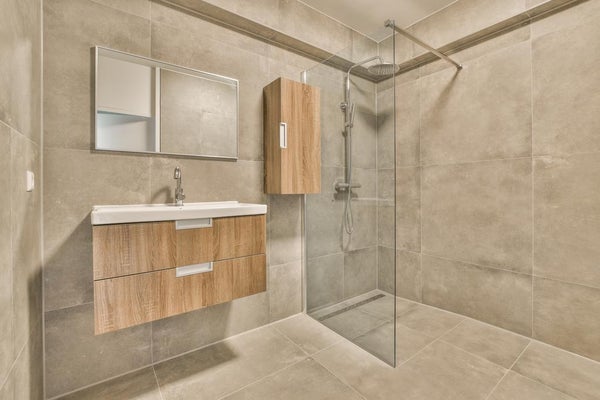 Dans le hall se trouvent les toilettes séparées avec fontaine et la salle de bain spacieuse qui est équipée d'une douche à l'italienne et d'un lavabo.