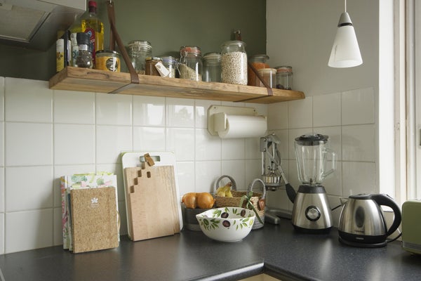 La cuisine est à l'avant de l'appartement et entièrement équipée.