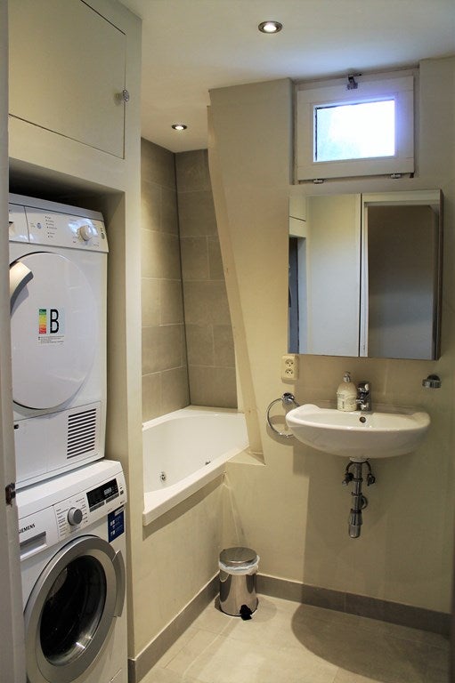 Entrée de l'appartement au premier étage, spacieux espace de vie ouvert, salle à manger et cuisine. Le salon et la salle à manger sont situés à l'avant, faisant face au canal. La cuisine moderne dispose d'un grand réchaud à gaz et d'un four et est équipée de tous les appareils modernes. L'appartement dispose de 2 chambres de bonne taille, toutes deux équipées d'un lit king size et d'une armoire. La belle salle de bain a une douche, un jacuzzi, des toilettes, un lave-linge et un sèche-linge. La deuxième salle de bain a une douche et des toilettes. Du couloir, vous pouvez accéder à la belle terrasse.
