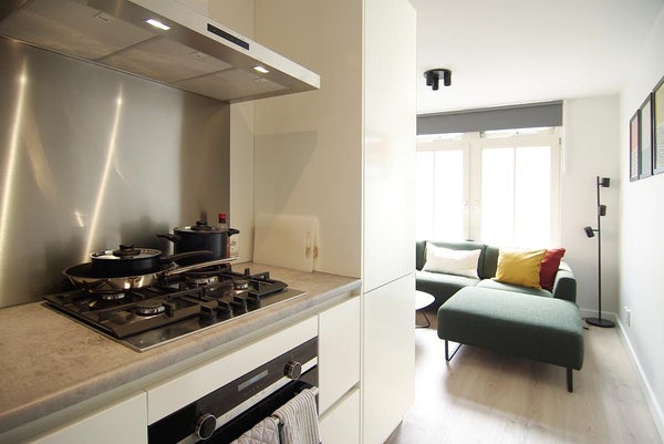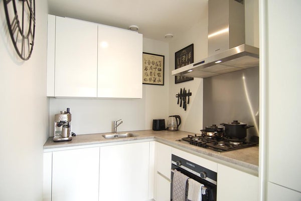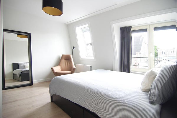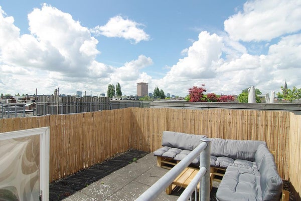 Cet appartement lumineux et moderne au quatrième étage est situé dans le quartier vibrant de la Pijp à Amsterdam et entièrement rénové fin 2020. Le complexe d'appartements a été construit en 2006 et dispose d'un ascenseur et d'une boîte de rangement. Cet appartement entièrement meublé dispose d'une terrasse sur le toit privée avec de belles vues sur la ville, d'une cuisine entièrement équipée, d'une salle de bain moderne, de parquets en stratifié dans tout l'appartement, de double vitrage, de 2 chambres (une pour invités/bureau à domicile) et d'un espace de rangement interne.
