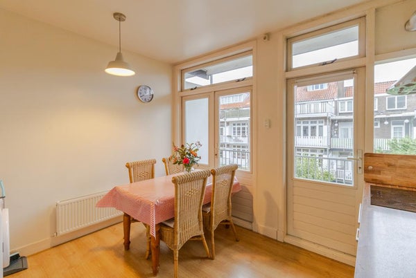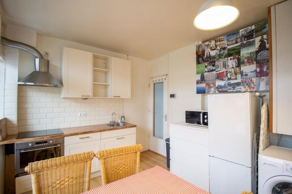 Cet appartement entièrement meublé de 3 chambres dans le quartier de Hoofddorppleinbuurt est situé au deuxième étage. La porte d'entrée s'ouvre dans le hall. À travers ce hall, vous pouvez accéder à la cuisine ouverte et à la salle à manger, qui se trouve à l'arrière de la propriété. La cuisine dispose d'une plaque de cuisson à induction, d'un four, d'un micro-ondes, d'un réfrigérateur, d'un congélateur et offre beaucoup d'espace de rangement. Par la cuisine, vous pouvez accéder au balcon orienté à l'est, un endroit idéal pour prendre un café au soleil du matin. De plus, à l'arrière de cet appartement se trouve la première chambre, qui donne également accès au balcon.