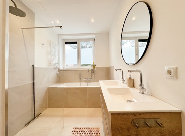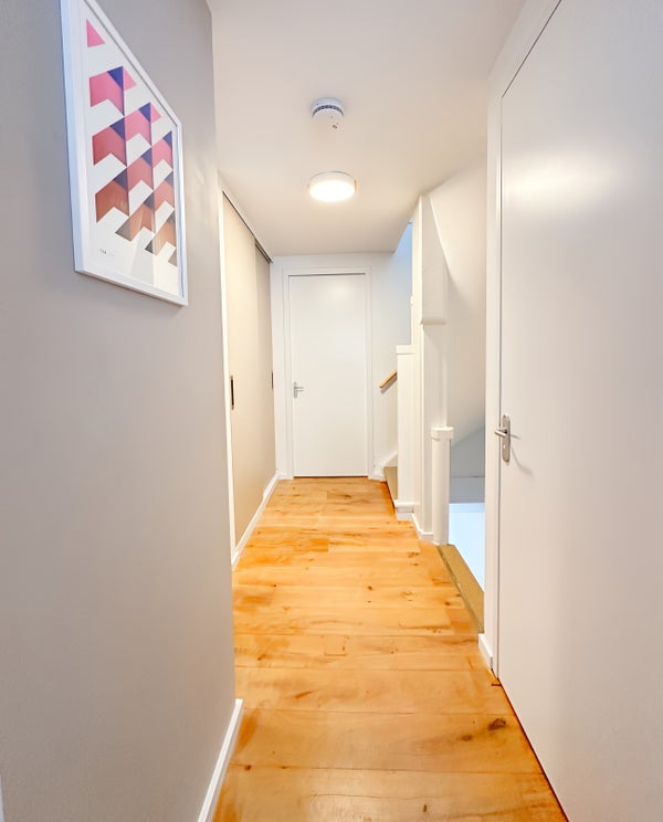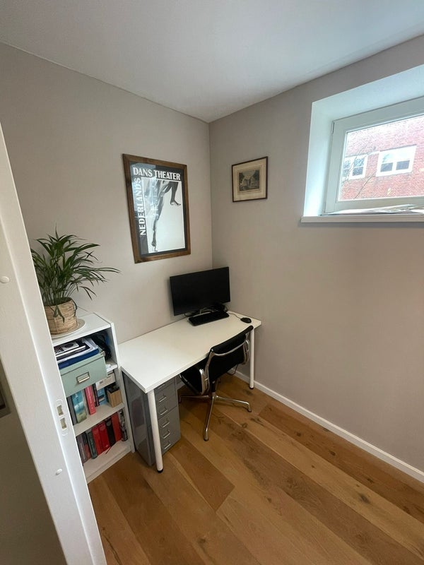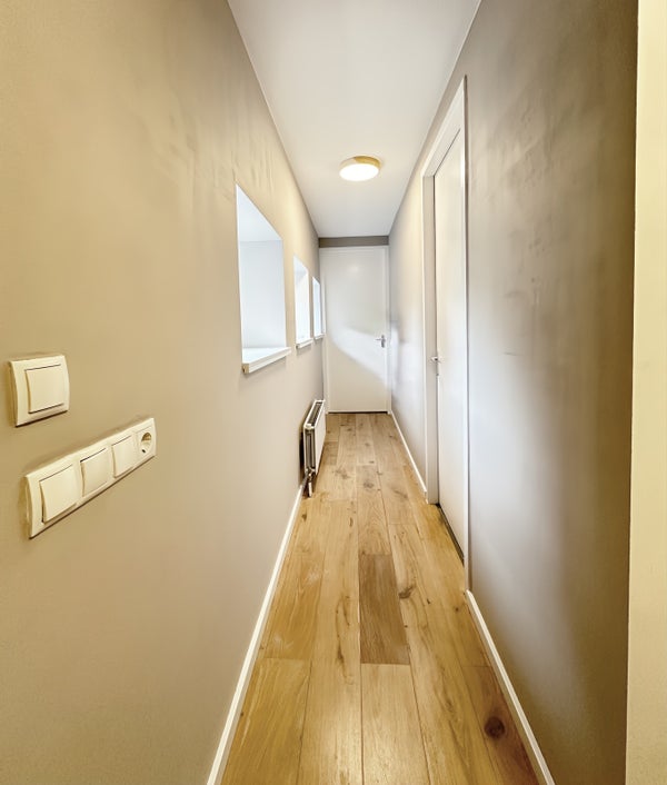 En passant par votre propre porte d'entrée au rez-de-chaussée, vous entrez dans le hall avec un escalier intérieur menant au 1er étage. Au 1er étage, se trouvent les 2 chambres, le bureau, des toilettes séparées et une salle de bains avec baignoire. Toutes les chambres disposent de grandes armoires et de suffisamment de possibilités de rangement.