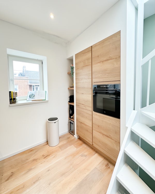 Au 2e étage, vous trouvez la cuisine ouverte et le grand salon. La cuisine est équipée d'une plaque de cuisson à induction avec « hood-in-hob ». Vous n'avez pas besoin de cuisiner seul dans cette cuisine car l'îlot de cuisine fait également office de bar. Bien sûr, la cuisine est également équipée d'un lave-vaisselle, d'un four, d'un réfrigérateur avec compartiment congélateur et de suffisamment d'espace de rangement. La porte de balcon pour votre café du matin est située au nord-ouest.