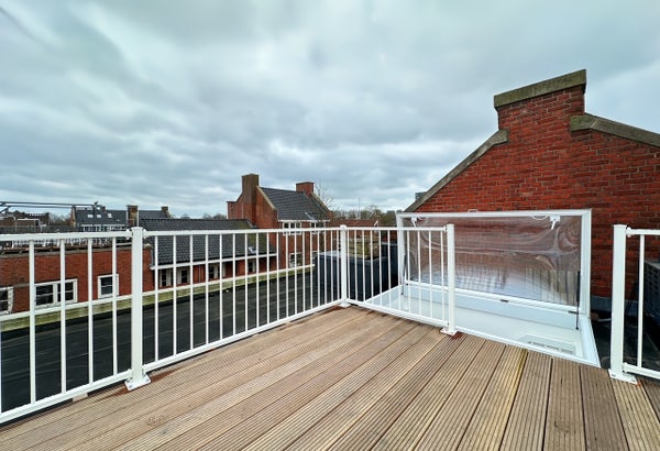 Via un escalier fixe derrière la cuisine, vous accédez à la terrasse ensoleillée et rénovée pour les longues soirées d'été!
