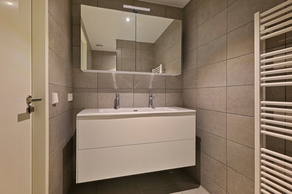 L'étage supérieur offre deux généreuses chambres. La salle de bain moderne dispose d'une douche spacieuse et d'un double lavabo. Pratique: une buanderie séparée avec des connexions pour une machine à laver et un sèche-linge. Il y a aussi un placard pratique sur le palier et un patio privé – parfait pour un délicieux petit-déjeuner d'été en plein air. L'appartement est complété par un espace de rangement externe.