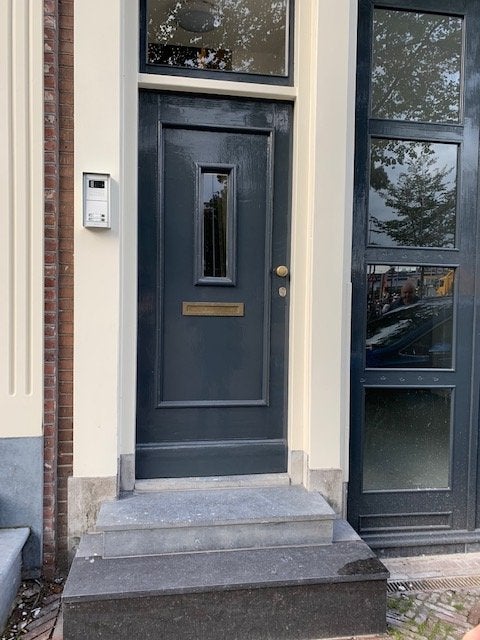 Entrée commune au rez-de-chaussée avec tapis doux et entrée uniquement pour l'appartement au 1er et au 2ème étage de l'immeuble.